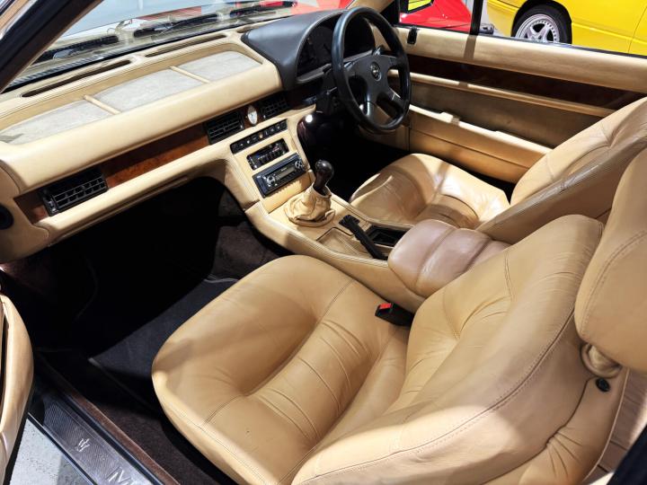 This particular example was first registered in January 1989, although the chassis number dates its manufacture to 1987; a fairly common anomaly for slow-selling exotica. In fact, in order to further boost sales, Maserati GB announced a special edition ‘SE’ version. This was not an official factory term as the modifications were done in the UK, but included a Zender bodykit of uprated bumpers, side skirts and boot lid spoiler, OZ 15” multi-spoke wheels to replace the original 14” plain alloys, a MOMO steering wheel and sometimes MOMO gear knob. Very often, the lower halves of the body were painted in a contrasting colour to give a two-tone effect. Judging by the MOT history, this car had this treatment, for while it is an original silver car, previous MOT testers refer to it having been silver/blue.