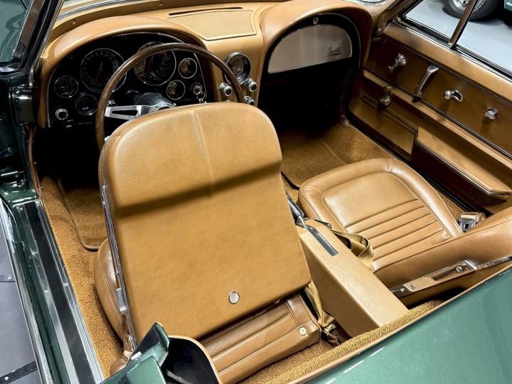This particular Goodwood Green convertible carries that history with pride. With its original colors, its matching-numbers powertrain, and its well-preserved character, it stands as a reminder of what made the C2 legendary: timeless design, authentic mechanical soul, and the unmistakable feeling of freedom that only a classic Corvette can give.