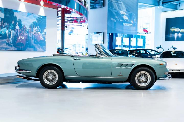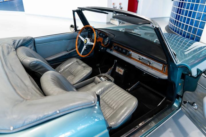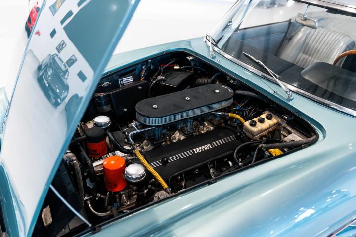 It sits today in beautiful condition and retains its factory correct colour combination of Blu Celeste over Grigio leather. The car has been awarded red book Classiche Certification from the Ferrari factory, confirming its original colour scheme, as well as its matching numbers engine and gearbox. One of only 200 examples built, this stunning 60’s V12 convertible would make a fantastic addition to any Ferrari collection. Contact us now for more information or to arrange a viewing.