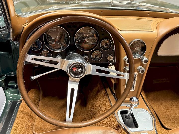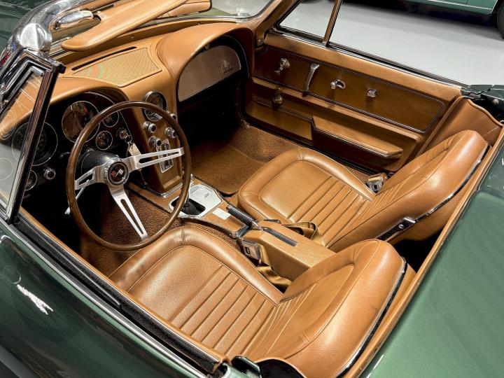 This particular Goodwood Green convertible carries that history with pride. With its original colors, its matching-numbers powertrain, and its well-preserved character, it stands as a reminder of what made the C2 legendary: timeless design, authentic mechanical soul, and the unmistakable feeling of freedom that only a classic Corvette can give.