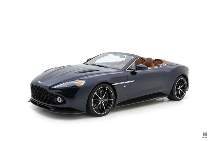 This car, number 1 of the 99 Zagato Volantes built, is believed to be one of only a dozen examples delivered new to the United States. Finished in elegant Orient Blue with a navy soft top over a Centenary Saddle Tan leather interior, it is exceptionally well specified. The original owner commissioned over $50,000 in options, including approximately $40,000 of bespoke enhancements through the Q by Aston Martin program. Highlights include walnut veneer trim, unique seat and interior patterns, and a One-77-inspired steering wheel that adds a motorsport-derived touch to the luxurious cabin.