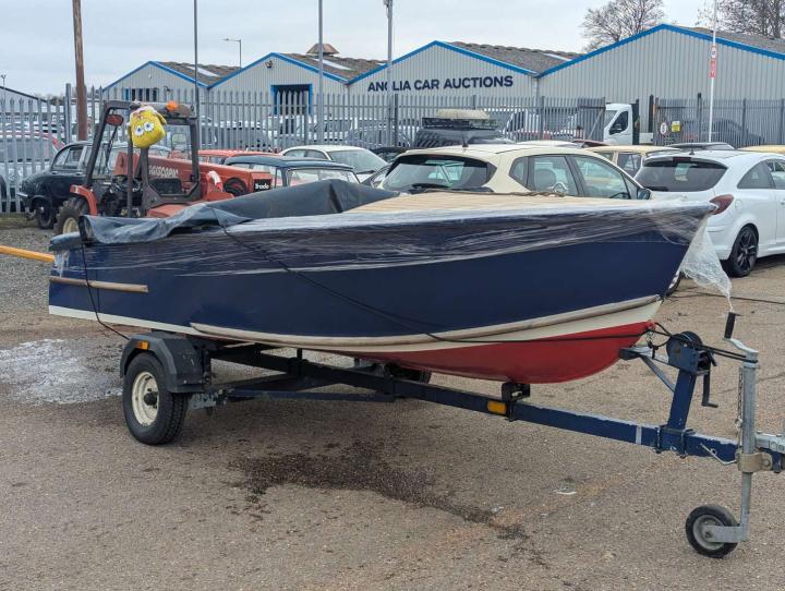 This Healey 55 is a 16ft boat with an inboard engine. These desirable, performance-focused craft were built using marine ply and fibreglass construction by Healey Marine Ltd (established by Donald Healey of Austin-Healey fame), and this example is being sold as part of a deceased estate.